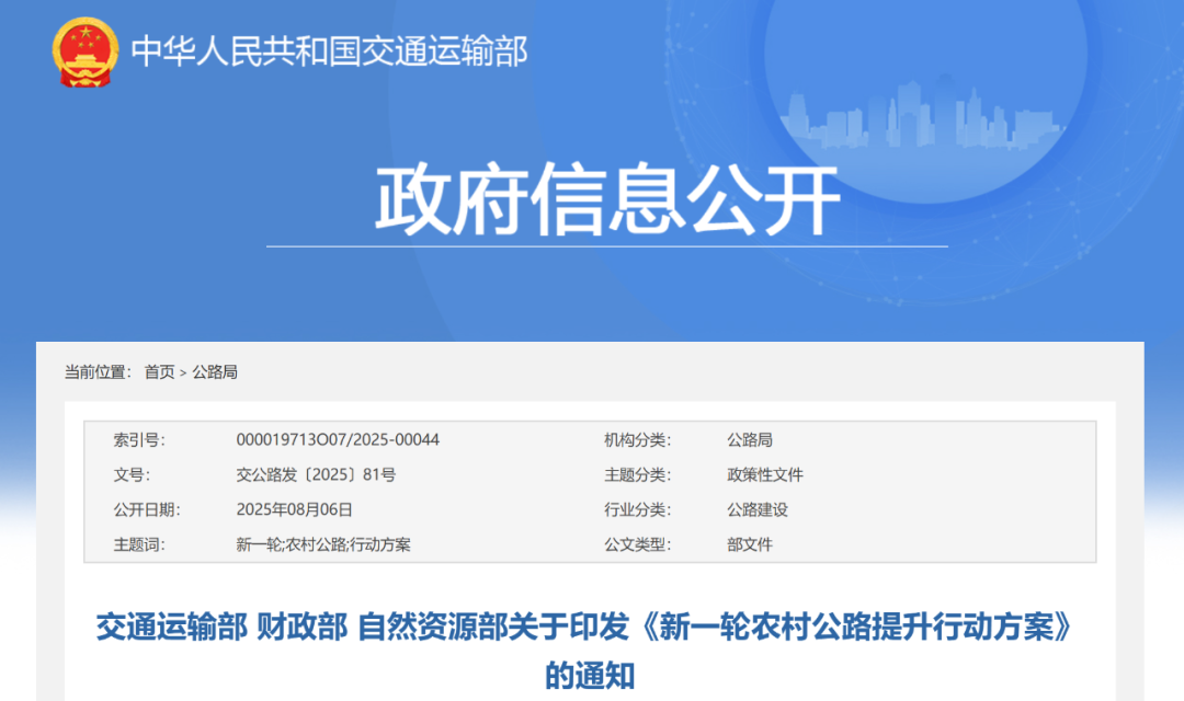 近日,交通運(yùn)輸部、財政部、自然資源部聯(lián)合印發(fā)《新一輪農(nóng)村公路提升行動方案》(簡稱《行動方案》),部署實施新一輪農(nóng)村公路提升行動相關(guān)工作,持續(xù)推動“四好農(nóng)村路”高質(zhì)量發(fā)展。