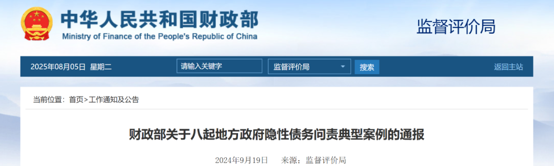 通報(bào)8起地方政府隱性債務(wù)問責(zé)案例