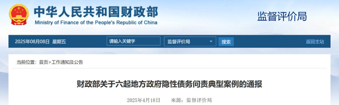 通報(bào)6起地方政府隱性債務(wù)問責(zé)案例