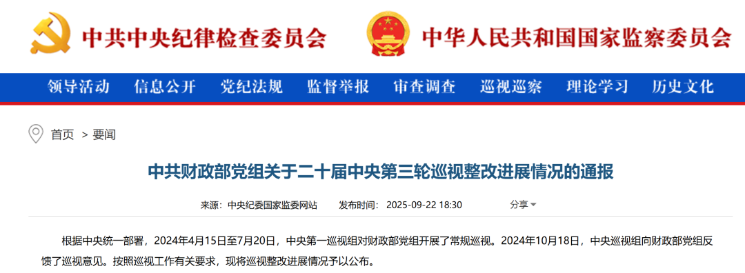 財政部巡視整改通報:聚焦招投標(biāo)整治等各類整改問題,扎實開展“十五五”規(guī)劃前期謀劃