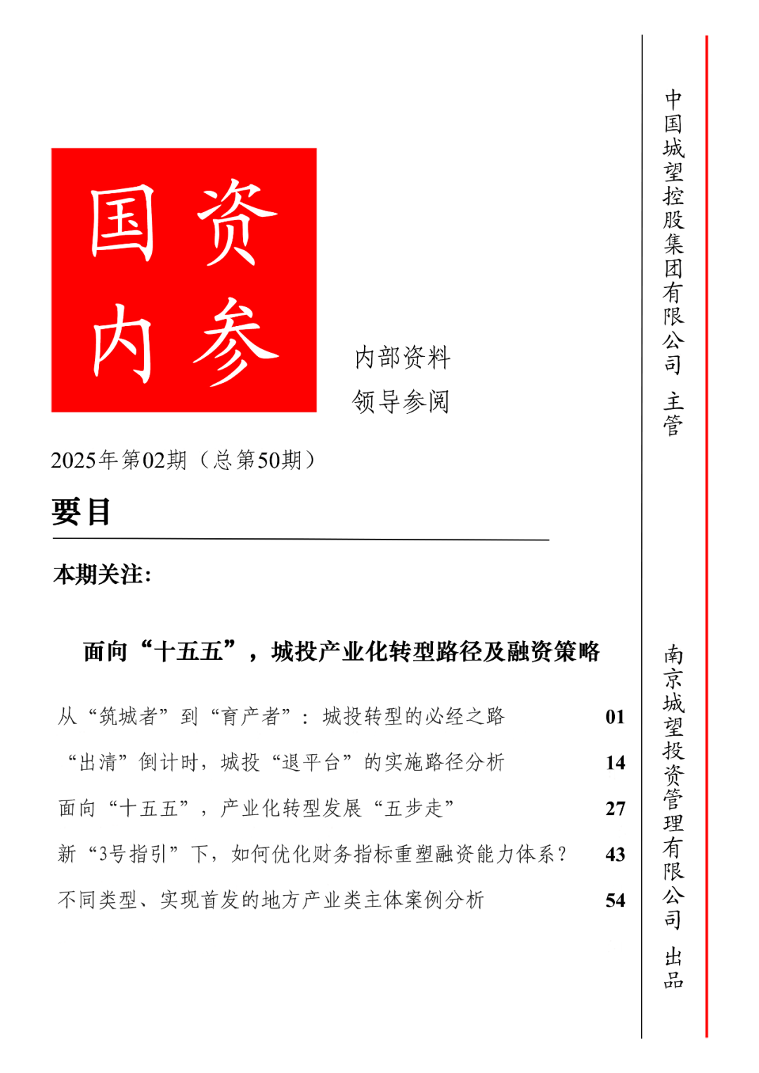聚焦“十五五”新機(jī)遇!城望第50期內(nèi)參《面向“十五五”,城投產(chǎn)業(yè)化轉(zhuǎn)型路徑及融資策略》重磅發(fā)布!聚焦城投轉(zhuǎn)型發(fā)展的核心訴求,既拆解產(chǎn)業(yè)化轉(zhuǎn)型的關(guān)鍵邏輯,又解鎖融資破局的實用策略,掃清轉(zhuǎn)型路上的“絆腳石”,賦能高質(zhì)量發(fā)展!